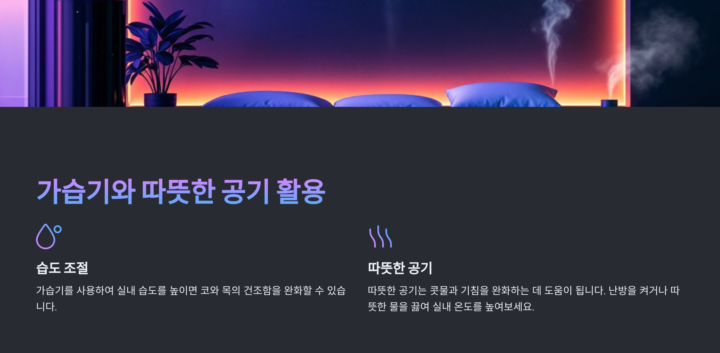 4. 가습기와 따뜻한 공기활용 (적절한 습도 유지하기)