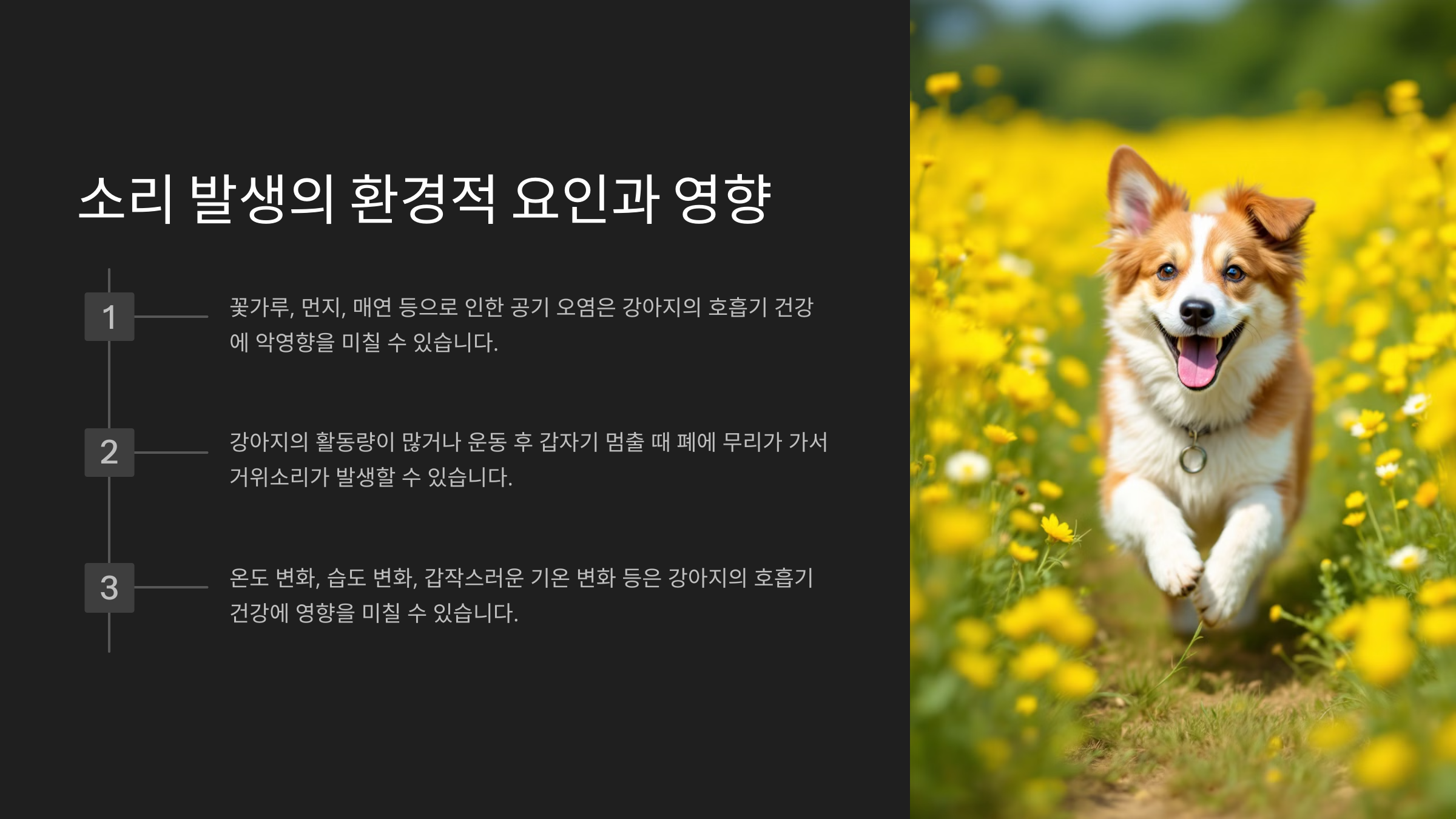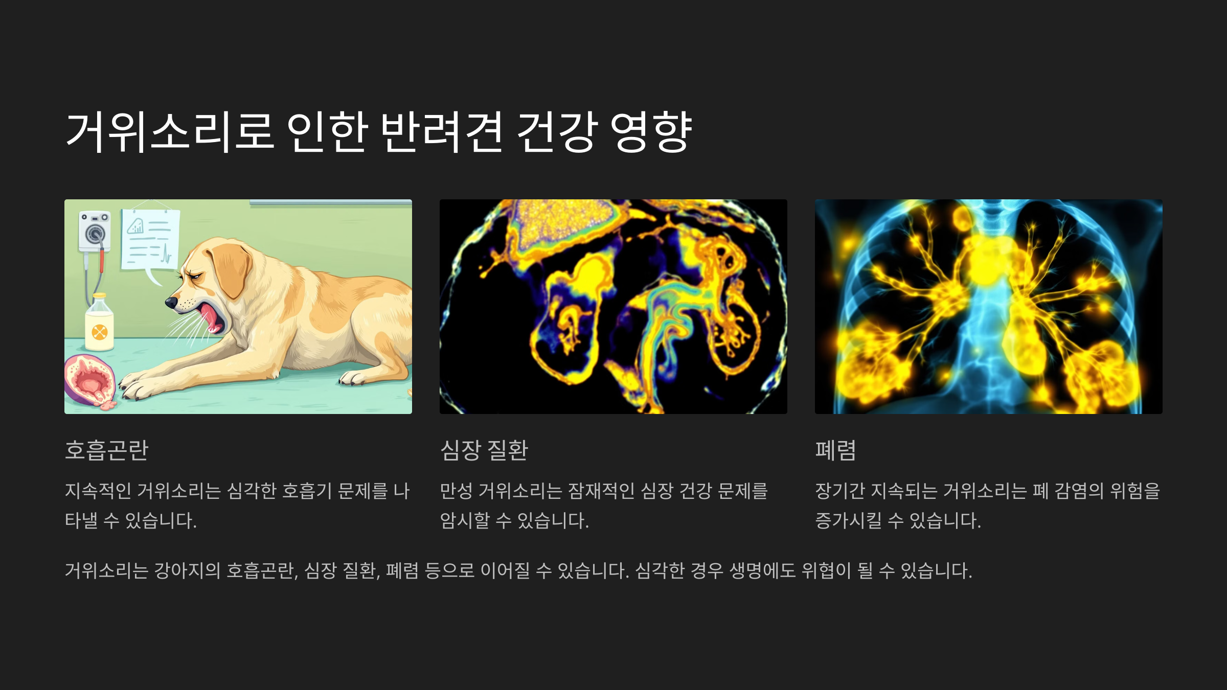 만약 강아지가 반복적으로 거위 같은 소리를 낸다면, 기관허탈을 의심하고 동물병원에 방문해야 합니다. 🚑