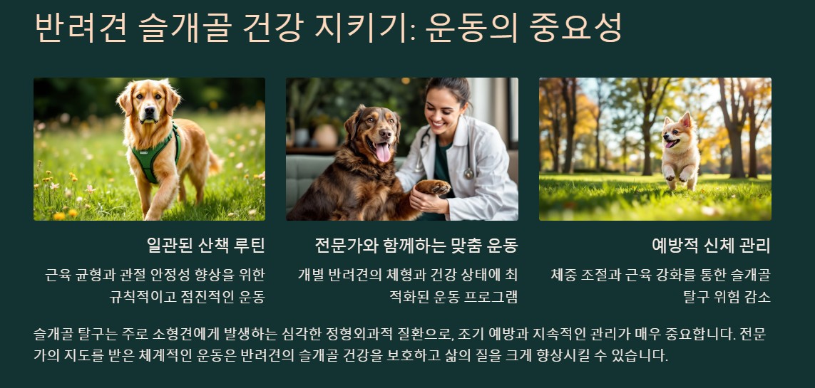 강아지의 슬개골 건강을 지키기 위해서는 적절한 운동이 필수예요! 🐾 하지만 너무 과격한 운동은 오히려 관절에 부담을 줄 수 있기 때문에 강아지의 체력과 슬개골 상태에 맞는 적절한 운동을 선택하는 것이 중요해요.