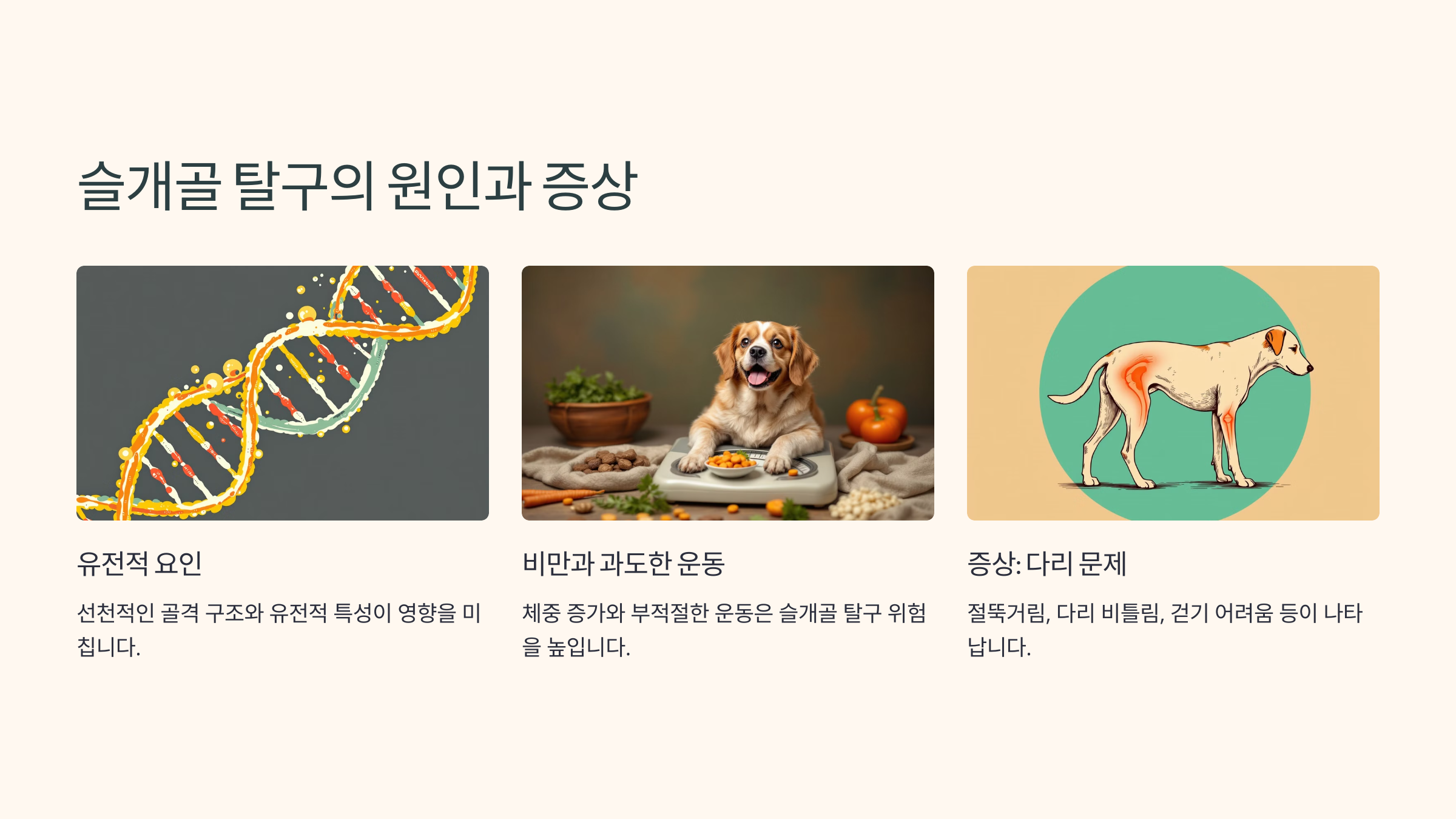 오늘은 슬개골 탈구의 원인과 증상, 그리고 예방 방법까지 하나씩 자세히 알려드릴게요. 우리 소중한 반려견이 건강한 다리를 오래 유지할 수 있도록 함께 노력해봐요! 😊✨
