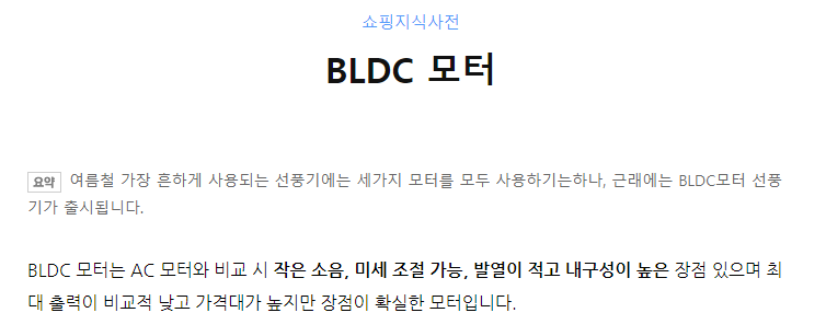 시중에서 BLDC모터라고 하면서 업체에서 선전하는데 정확하게 기존 선풍기 모터랑 뭔 차이?