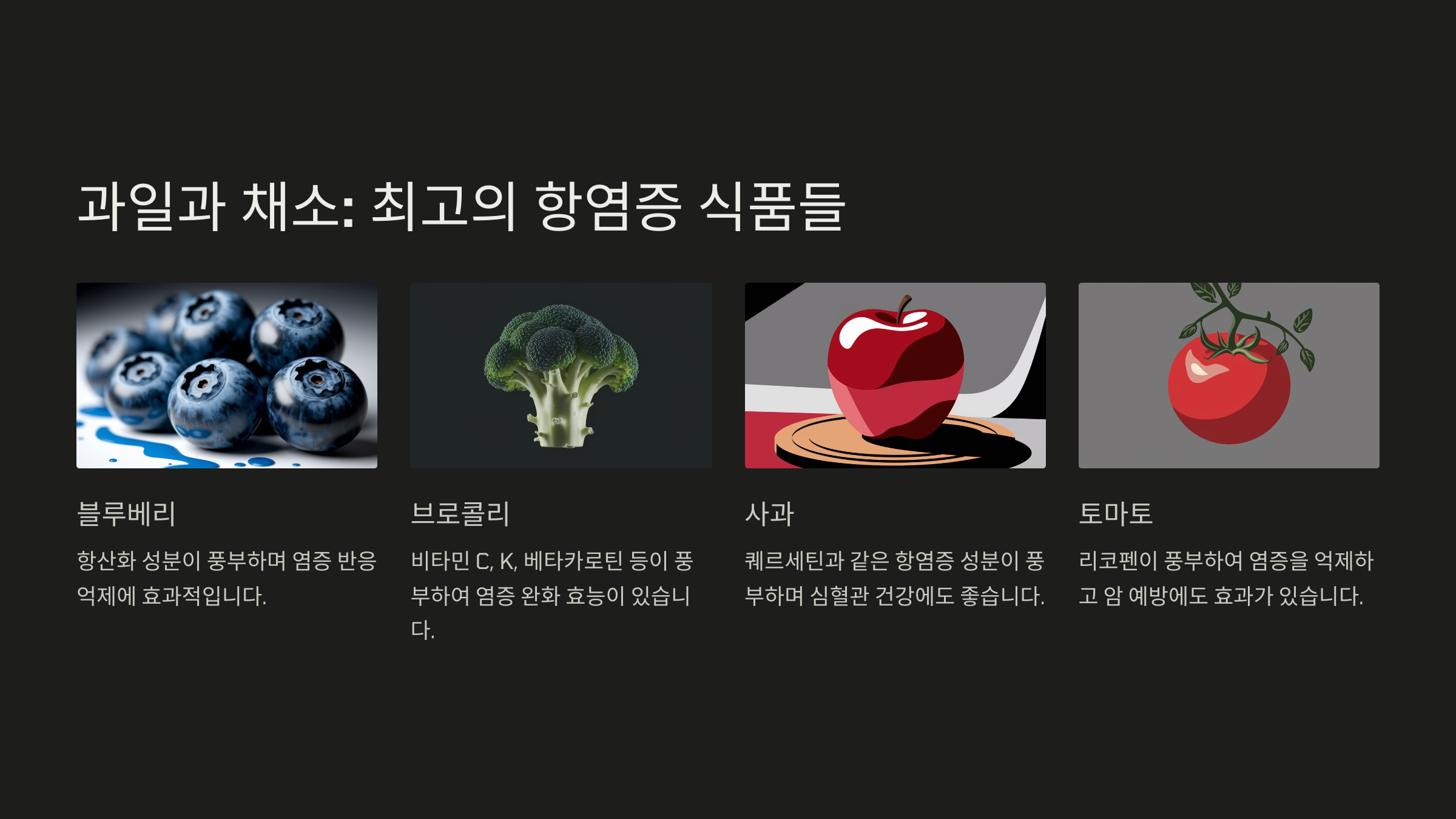 하지만 좋은 소식! 올바른 식습관과 자연적인 항염 식품 섭취만으로도 몸속 염증을 줄이고 건강을 지킬 수 있습니다. 지금부터 염증을 완화하는 데 도움이 되는 음식 10가지를 알려드릴게요!