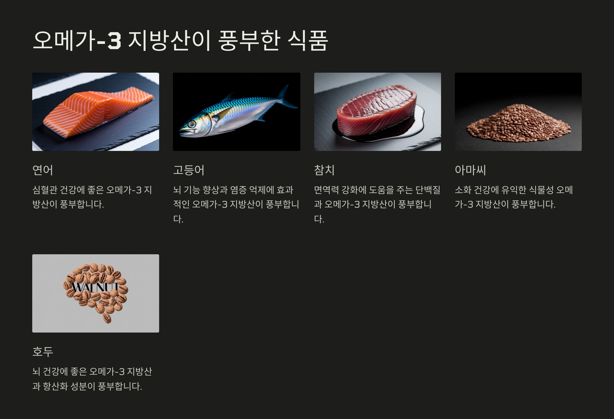 연어에는 오메가-3 지방산이 풍부해요. 이 성분이 염증을 억제하고 혈관 건강을 도와줍니다.