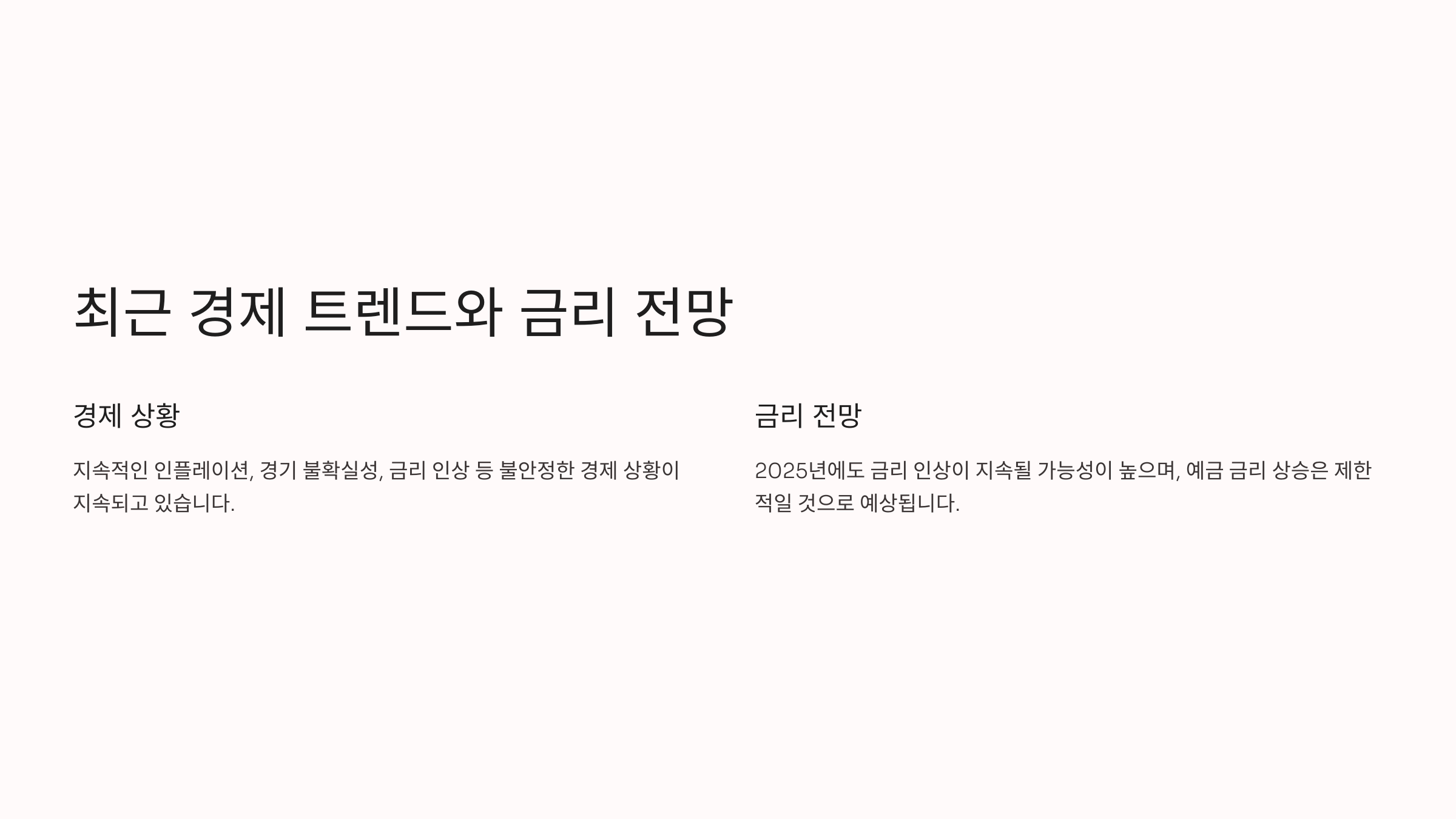 그러나 예금은 금리 인상 시기에 따라 수익률이 낮아질 수 있으며, 물가 상승률을 따라잡지 못해 실질적인 손실을 볼 수 있다는 단점을 가지고 있습니다.