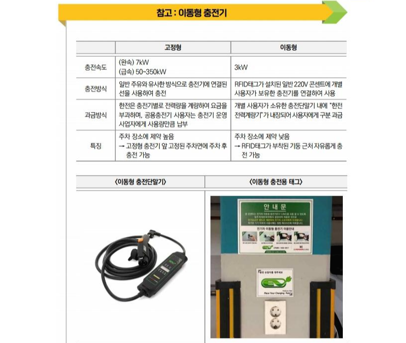 않는 이동형 충전기의 이용도 활발하다.(‘붙임’의 이동형 충전기 참조)