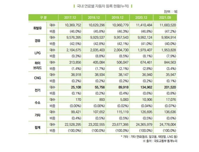 1. 연료별 자동차 등록 현황