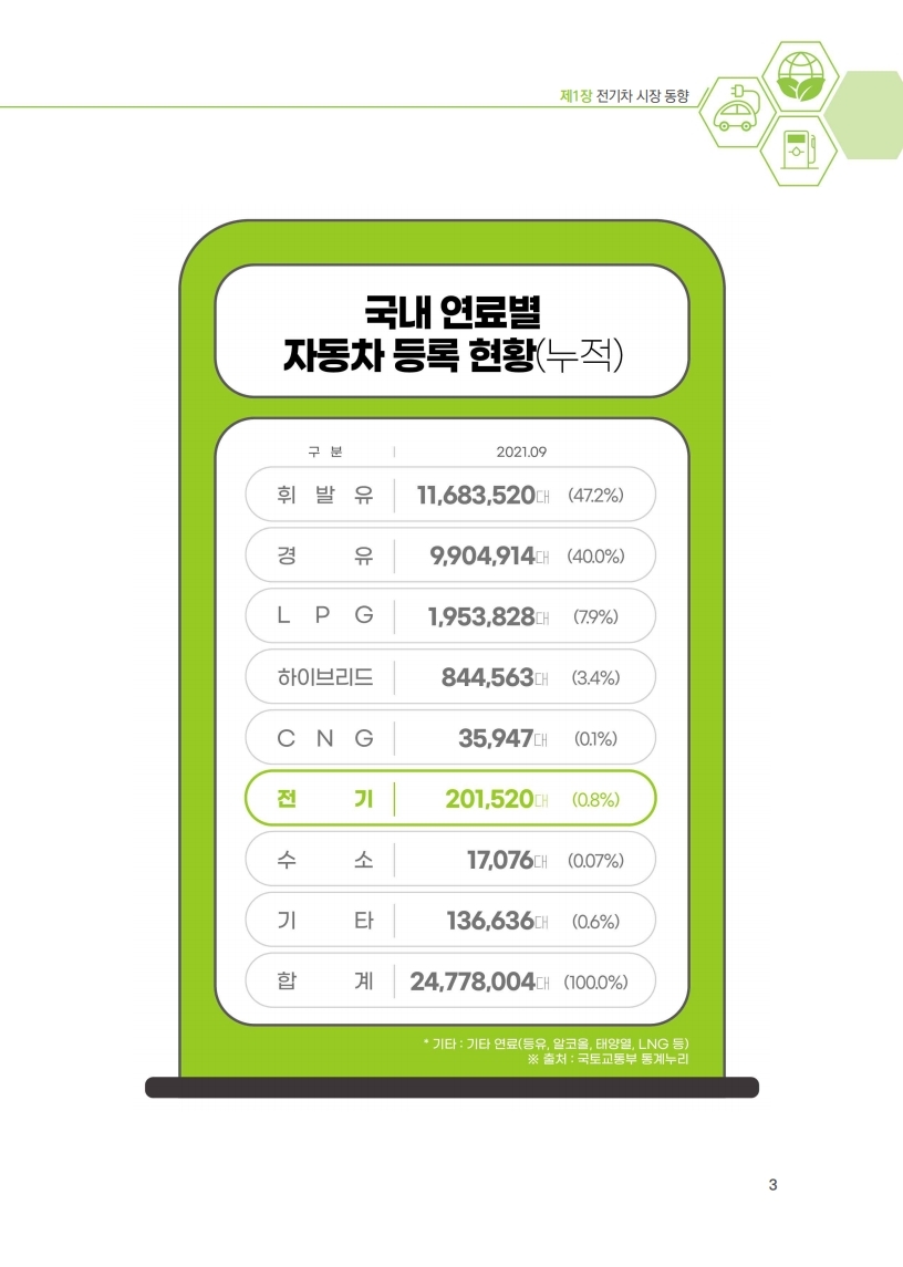 전기차는 정부의 구매 보조금 및 세금감면 등의 혜택으로 ’21년 9월 기준 등록대수 20만대(누적)를 넘어섰으며,