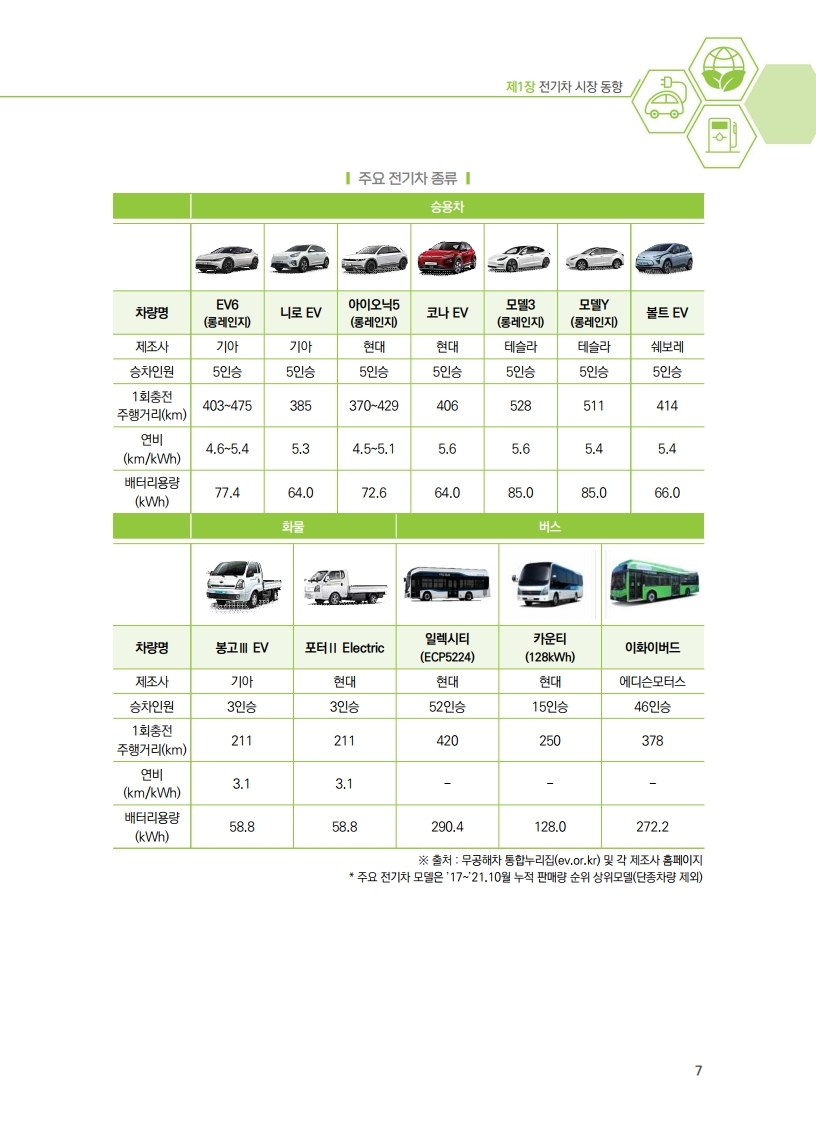 이에 2021년 국내 전기차 및