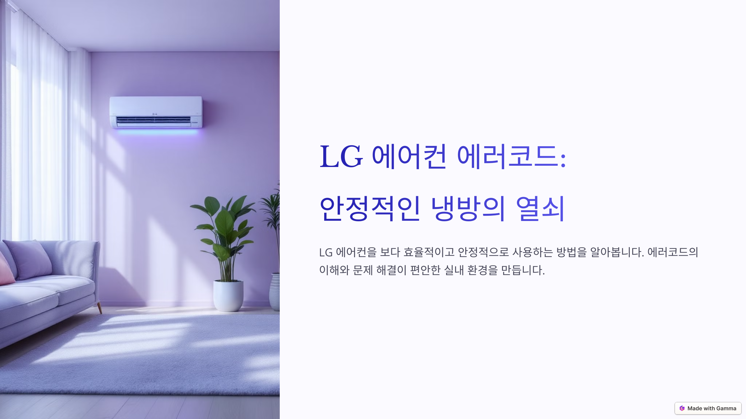 LG전자 에어컨을 사용하다 보면 다양한 이유로 에러코드가 발생할 수 있습니다. 하지만 모든 에러가 심각한 문제를 의미하는 것은 아닙니다. 간단한 조치만으로 해결할 수 있는 경우도 많습니다. 본 글에서는 LG전자 에어컨에서 발생하는 주요 에러코드와 발생 사유, 해결 방법을 안내해드립니다. 또한 에러코드 확인 방법 및 브랜드별 무상점검 신청 방법도 함께 제공하니 참고하시기 바랍니다.